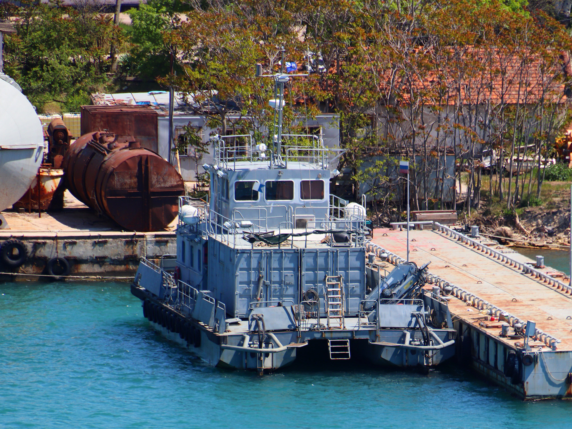 Спасательный многофункциональный катер СМК-2169 ЧФ РФ у плавпричала (фото А.Бричевский, 13 мая 2025 г.)