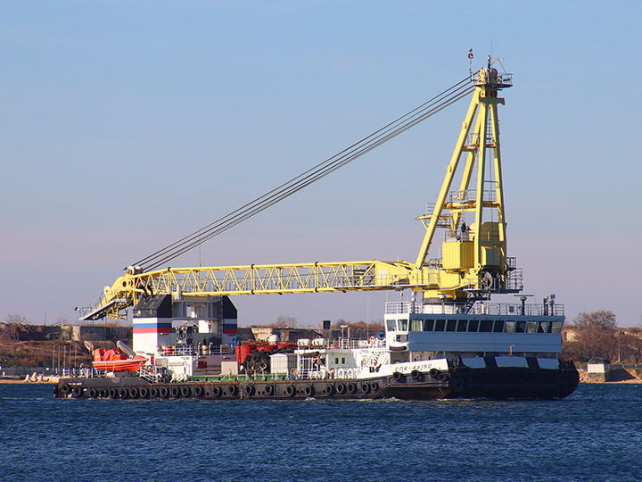 Самоходный плавучий кран СПК-46150 ЧФ РФ на ходу в акватории бухты Севастополя (фото А.Бричевский, 27 января 2025 г.)