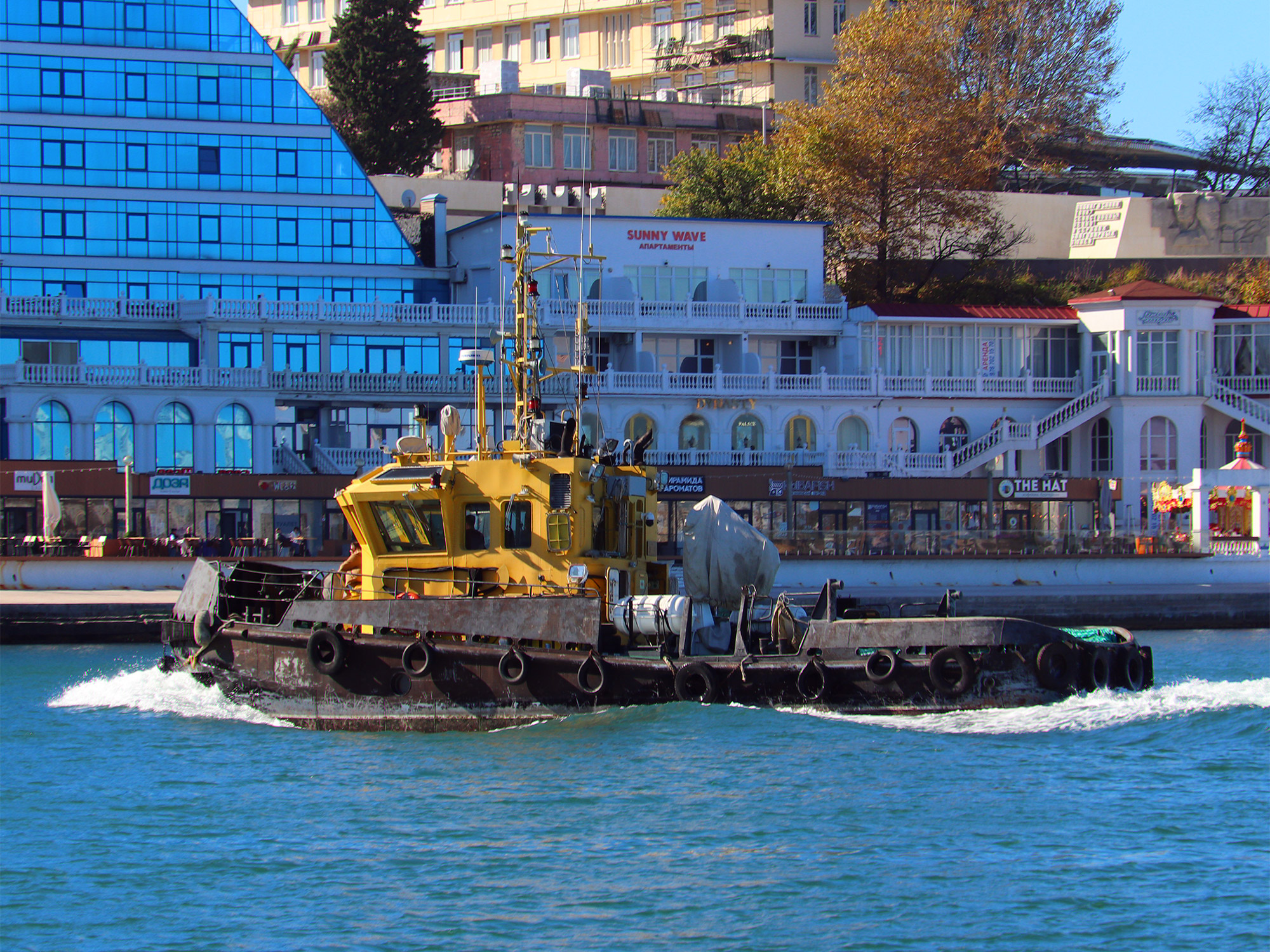Рейдовый буксир РБ-284 Черноморского флота на фоне Мыса Хрустальный, Севастополь (фото