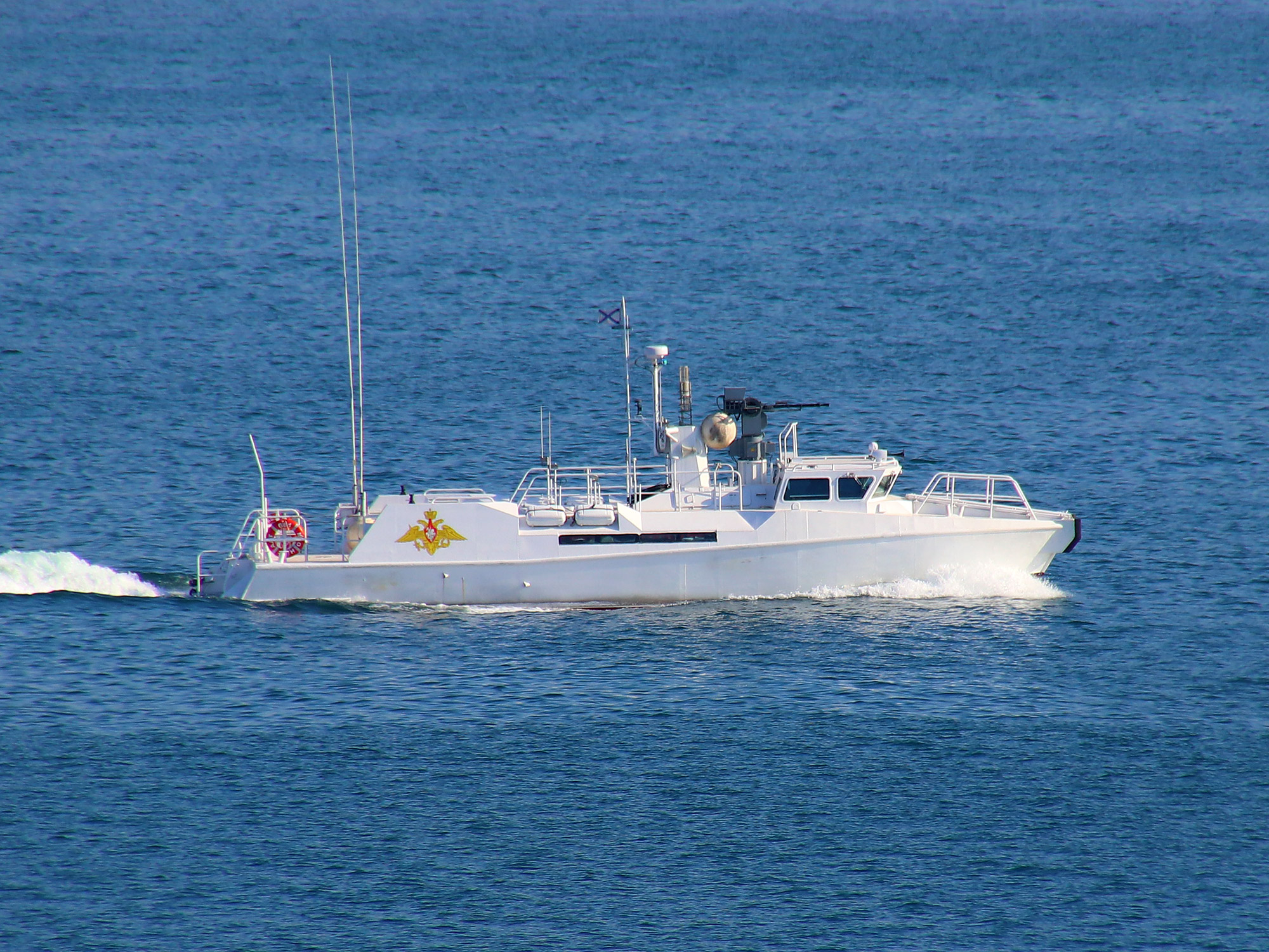 Противодиверсионный катер П-281 Балтийского флота на ходу в Севастопольской бухте (фото А.Бричевский, 05 апреля 2022 г.)