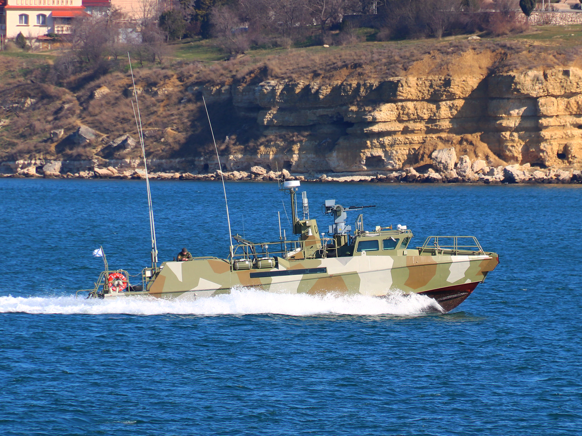 Противодиверсионный катер П-461 Балтийского флота типа "Раптор" в Севастопольской бухте (фото А.Бричевский, 02 марта 2023 г.)