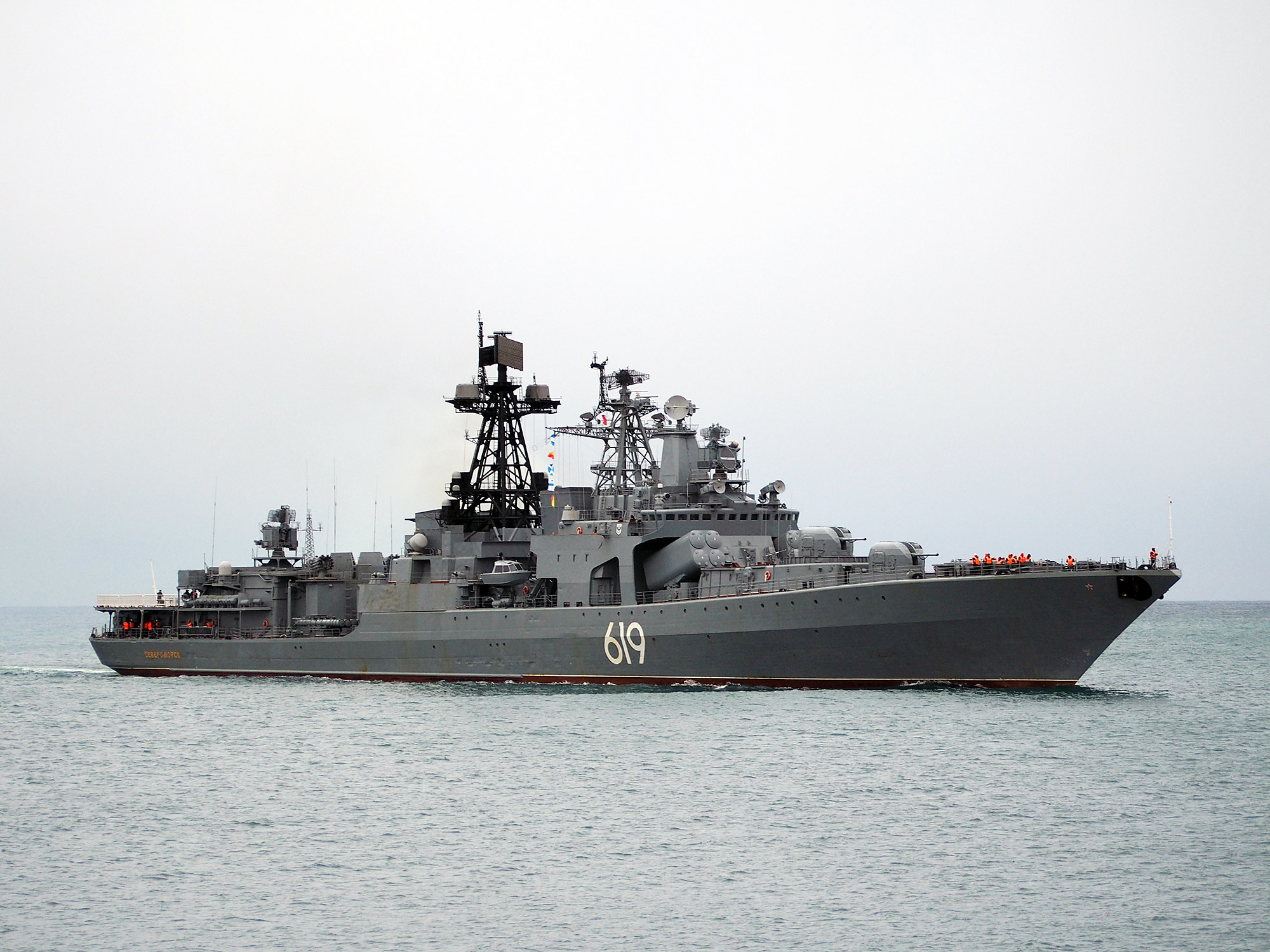 Большой противолодочный корабль "Североморск" Северного флота РФ на подходе к Севастополю (фото А.Бричевский, 10 января 2019 г.)