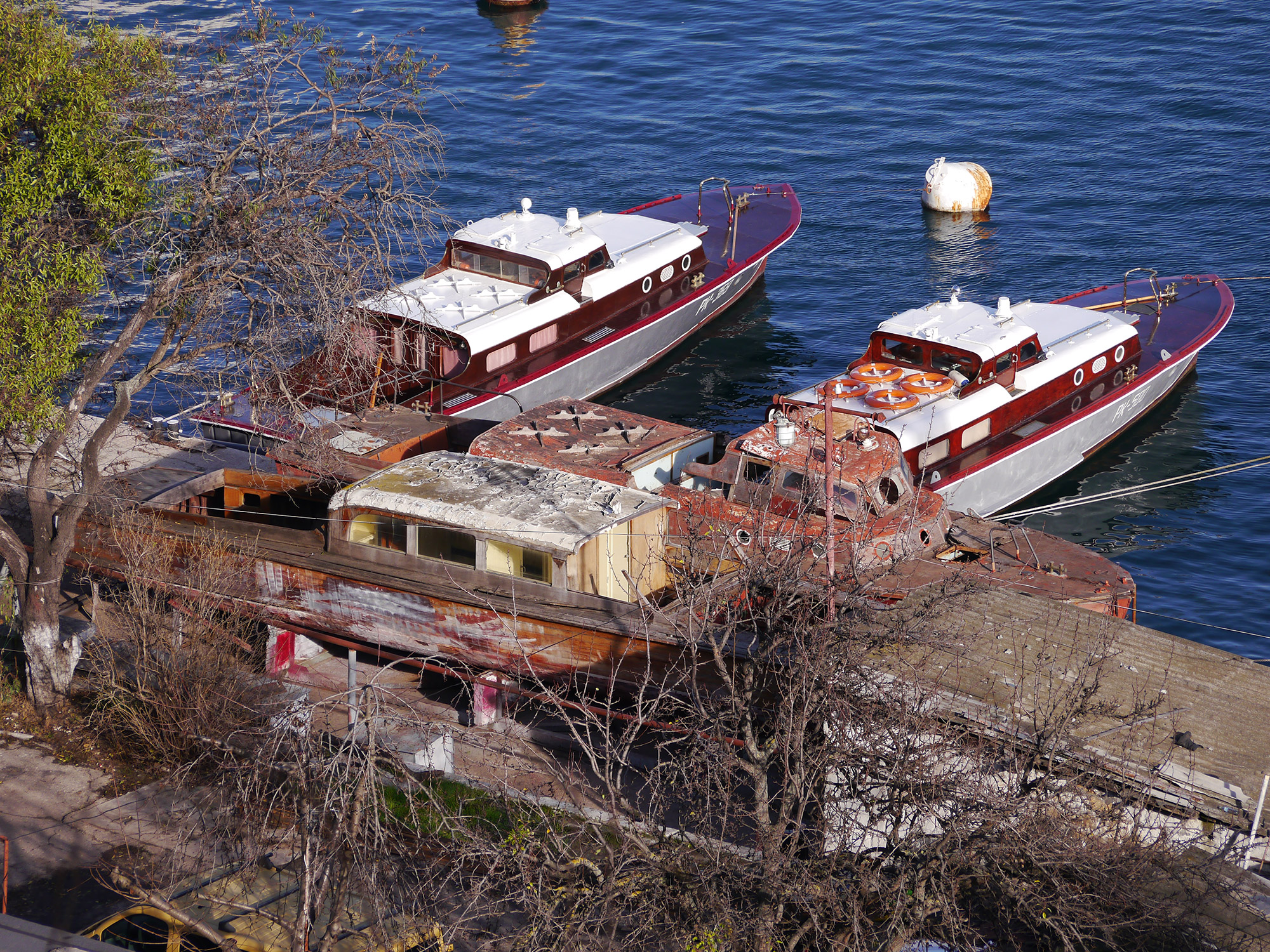 Корпус рейдового катера РК-01 на причале в Севастополе (фото А.Бричевский, 08 декабря 2015 г.)