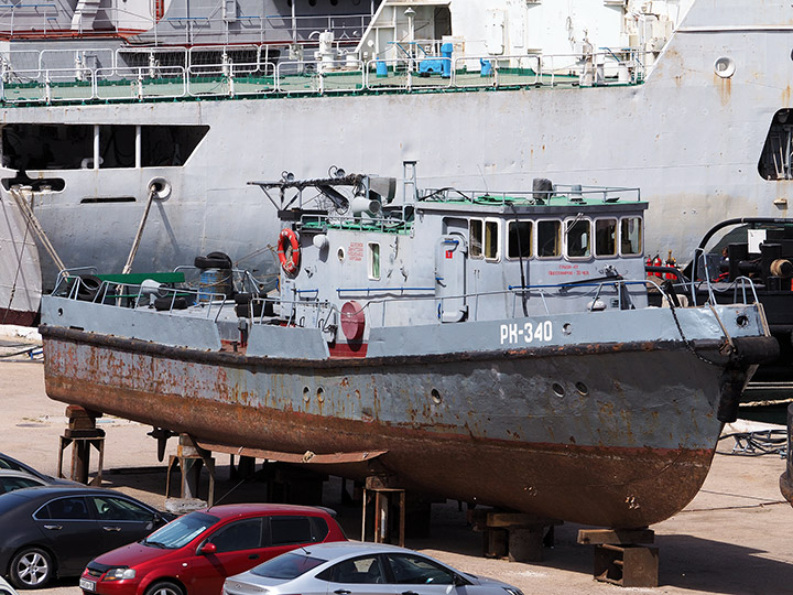 Рейдовый катер "РК-340" на кильблоках (фото А.Бричевский, 29 мая 2019 г.)