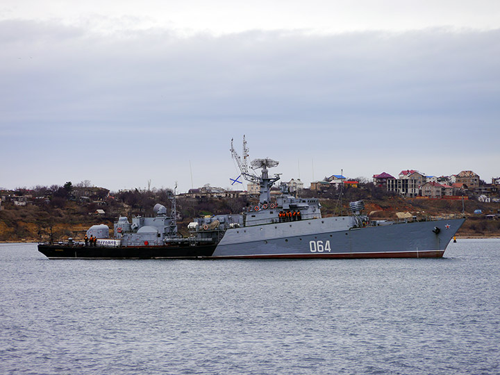 Буксировка малого противолодочного корабля "Муромец" ЧФ РФ (фото А.Бричевский, 01 февраля 2016 г.)