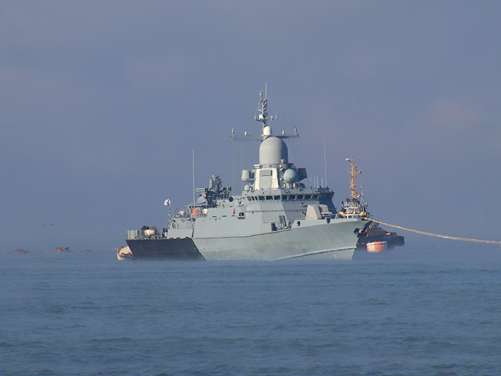 Малый ракетный корабль "Циклон" Черноморского флота в туманном море (фото А.Бричевский, 10 января 2024 г.)