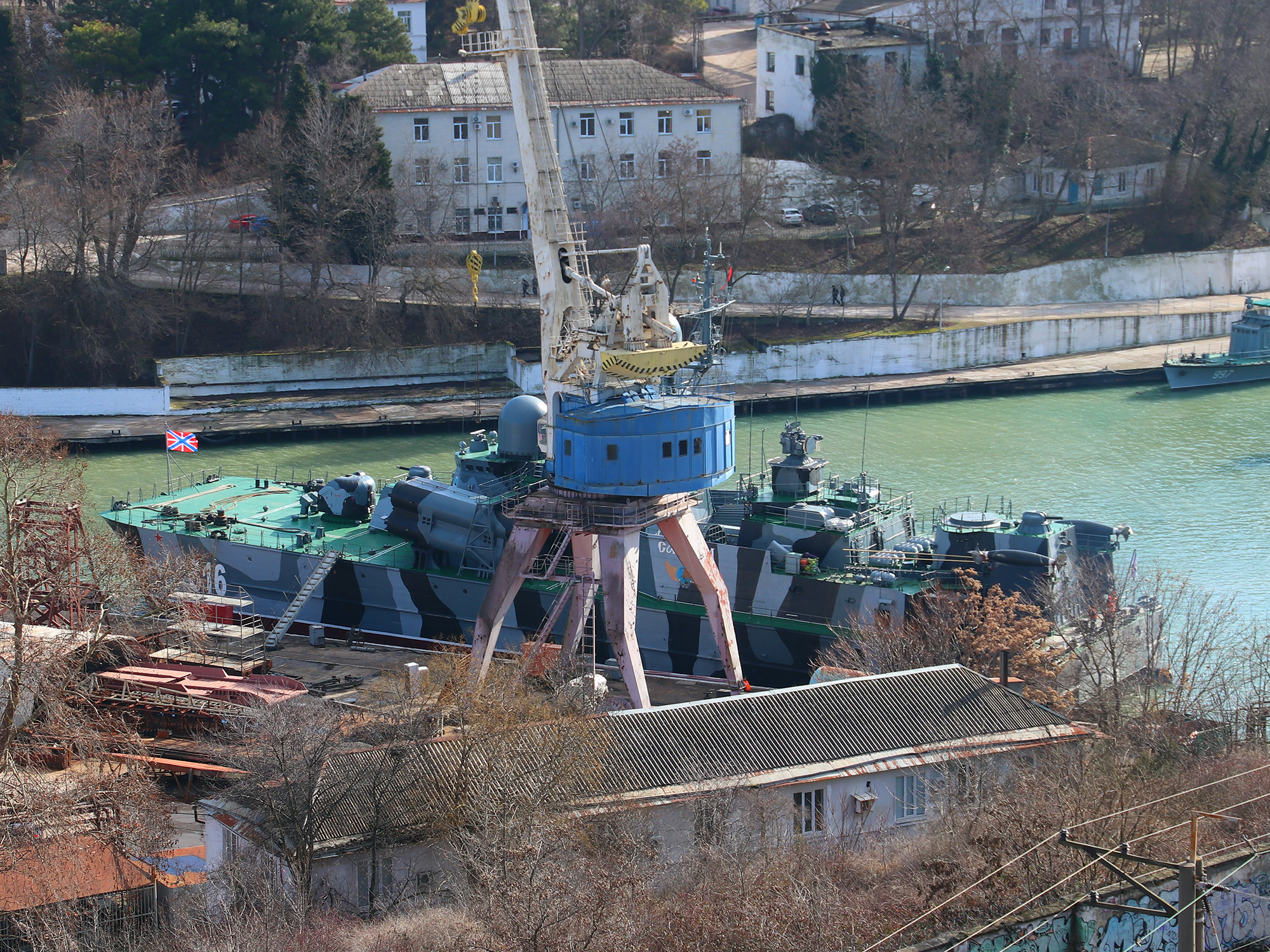 Ракетный корабль на воздушной подушке "Самум" у причала 13-го СРЗ в Севастополе (фото А.Бричевский, 09 февраля 2022 г.)