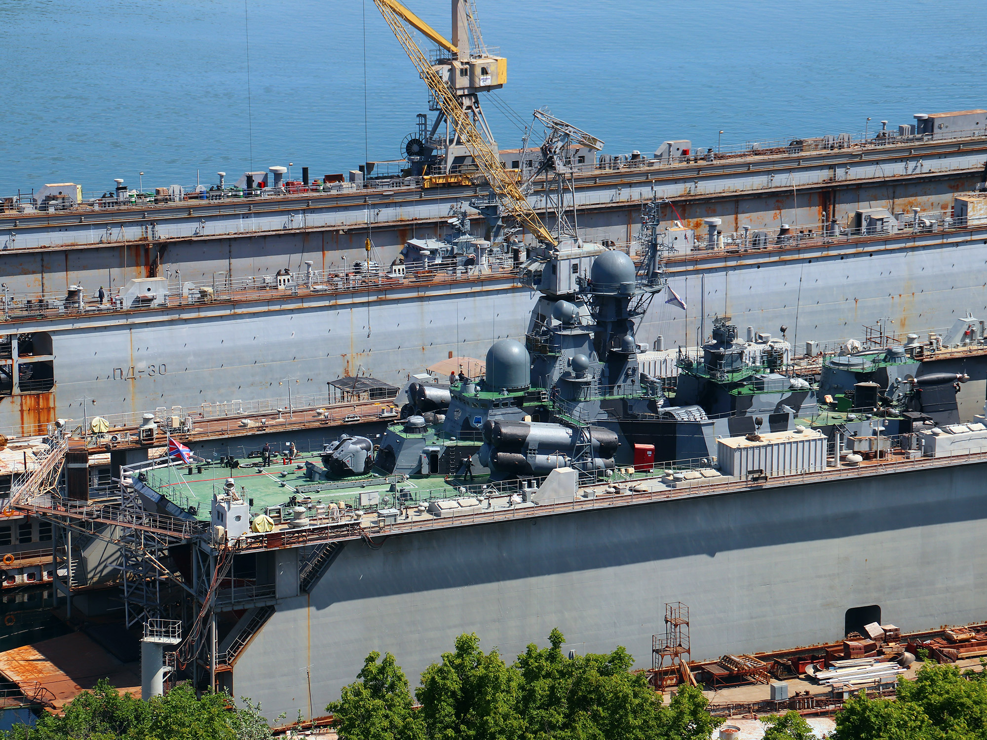 Ракетный корабль на воздушной подушке "Самум" Черноморского флота в плавдоке (фото А.Бричевский, 07 июня 2023 г.)