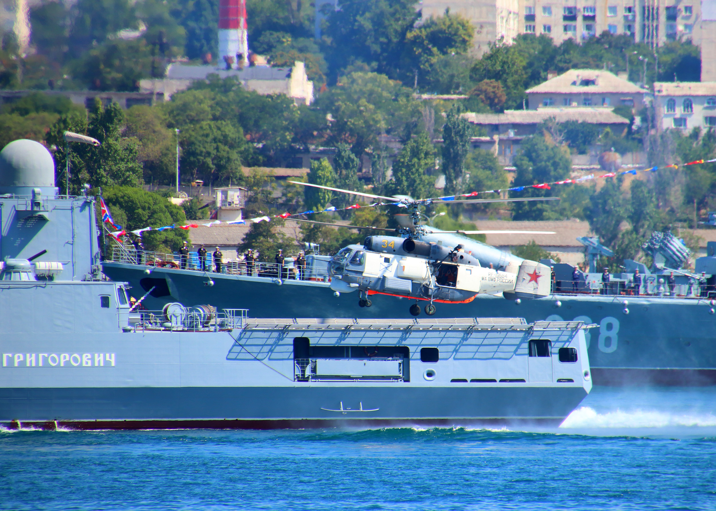 вертолет Ка-27ПС на вертолетной площадке фрегата "Адмирал Григорович"