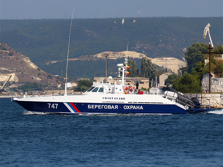 Пограничный сторожевой катер ПСКА-613 на ходу в Севастопольской бухте (фото А.Бричевский, 16 августа 2021 г.)