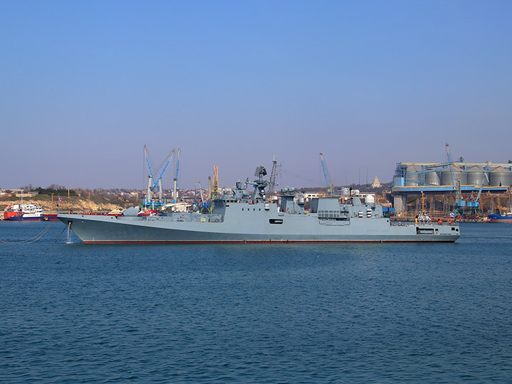 Фрегат "Адмирал Эссен" Черноморского флота России в Севастопольской бухте (фото А.Бричевский, 21 марта 2023 г.)
