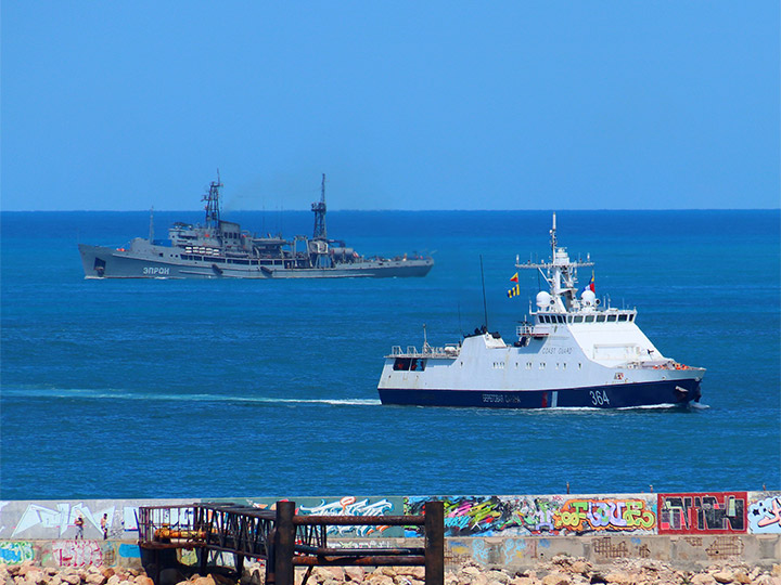 Спасательное судно "ЭПРОН" и пограничный сторожевой корабль (фото А.Бричевский, 12 июля 2022 г.)