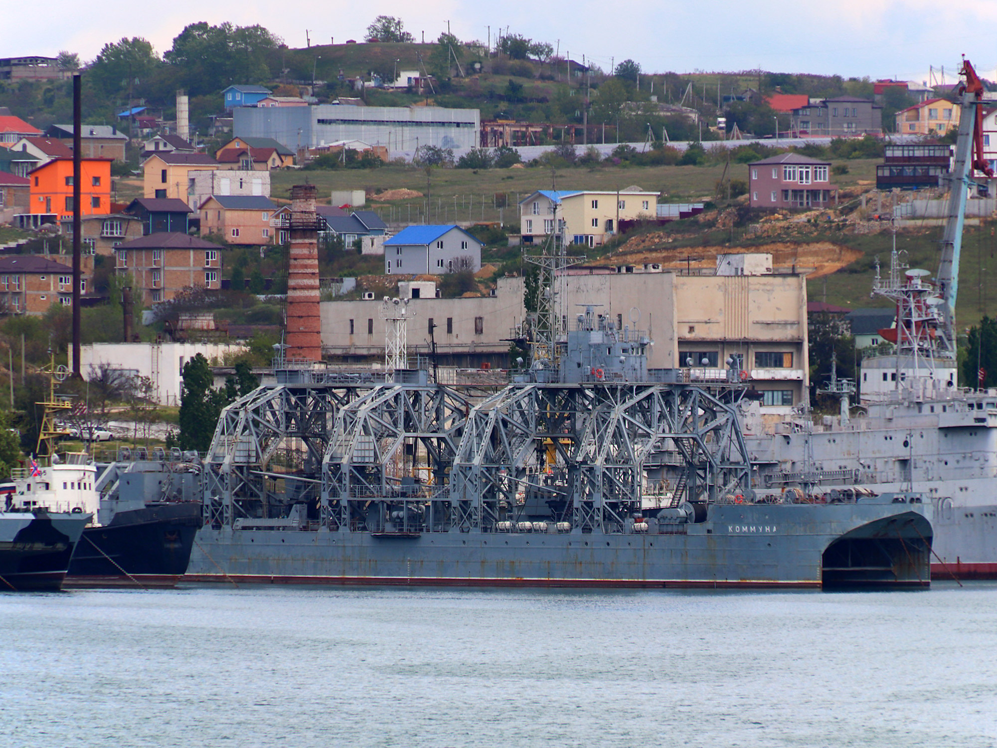 Спасательное судно "Коммуна" на фоне Северной стороны Севастополя (фото А.Бричевский, 10 мая 2023 г.)