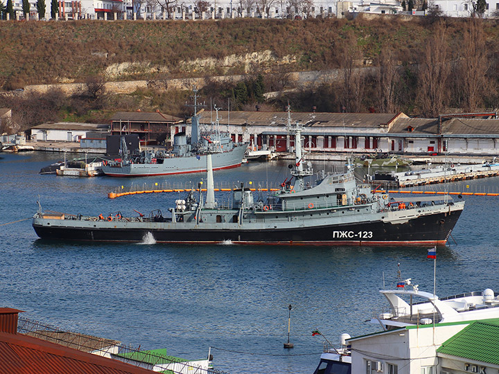 Противопожарное судно ПЖС-123 в Южной бухте Севастополя (фото А.Бричевский, 19 января 2023 г.)