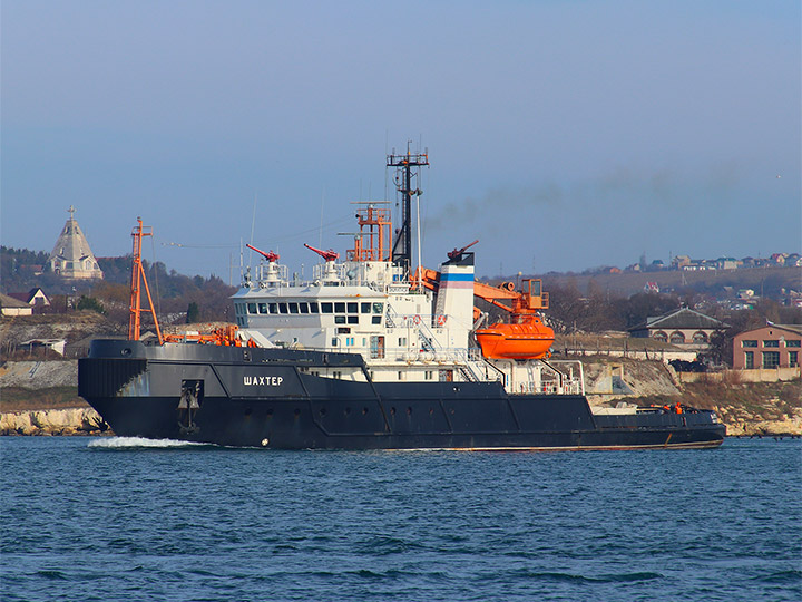 Спасательный буксир "Шахтер" на ходу в Севастопольской бухте (фото А.Бричевский, 10 января 2022 г.)