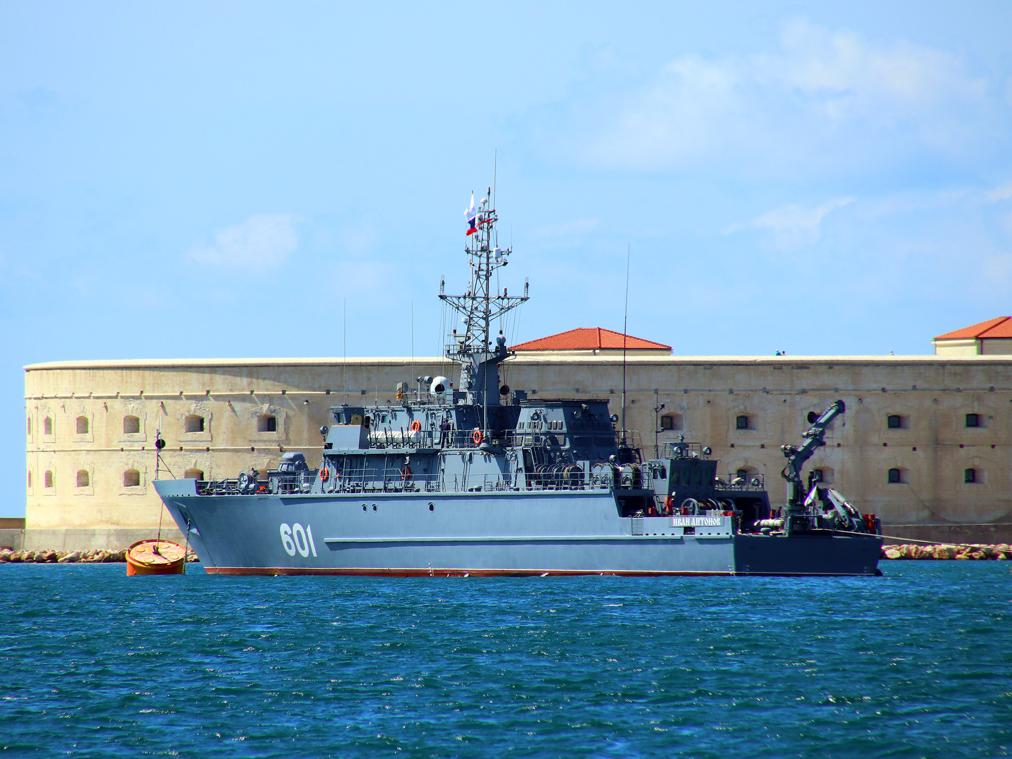Морской тральщик "Иван Антонов" на фоне Константиновской батареи, Севастополь (фото А.Бричевский, 27 июля 2020 г.)