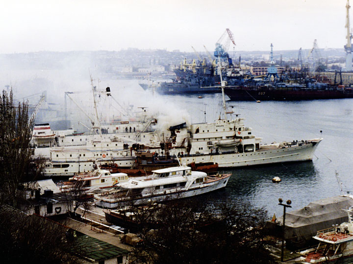 Пожар на корабле управления "Ангара" Черноморского флота (фото А.Кузенкова, 1994 г.)