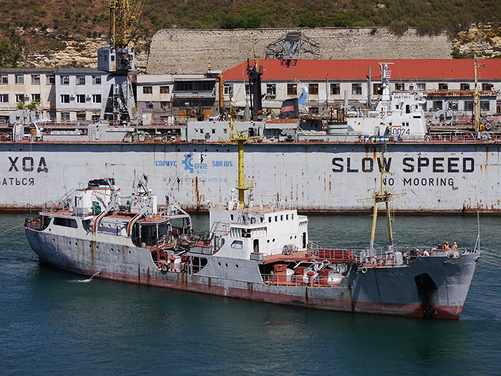 Малый морской танкер "Дон" выводят из Южной бухты Севастополя (фото А.Бричевский, 16 мая 2018 г.)