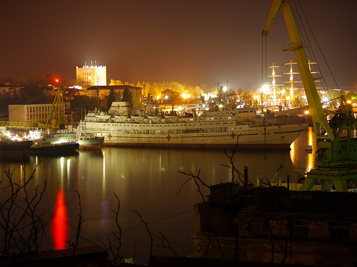 Госпитальное судно "Енисей" в ночном освещении (фото А.Бричевский, 19 октября 2016 г.)