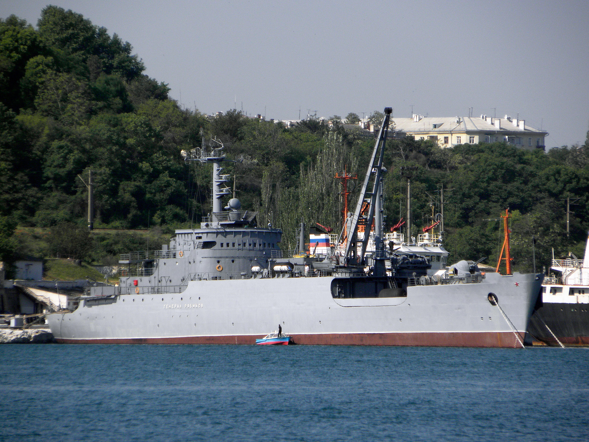Морской транспорт вооружения "Генерал Рябиков" - поднята грузовая стрела (фото А.Бричевский, 27 мая 2010 г.)