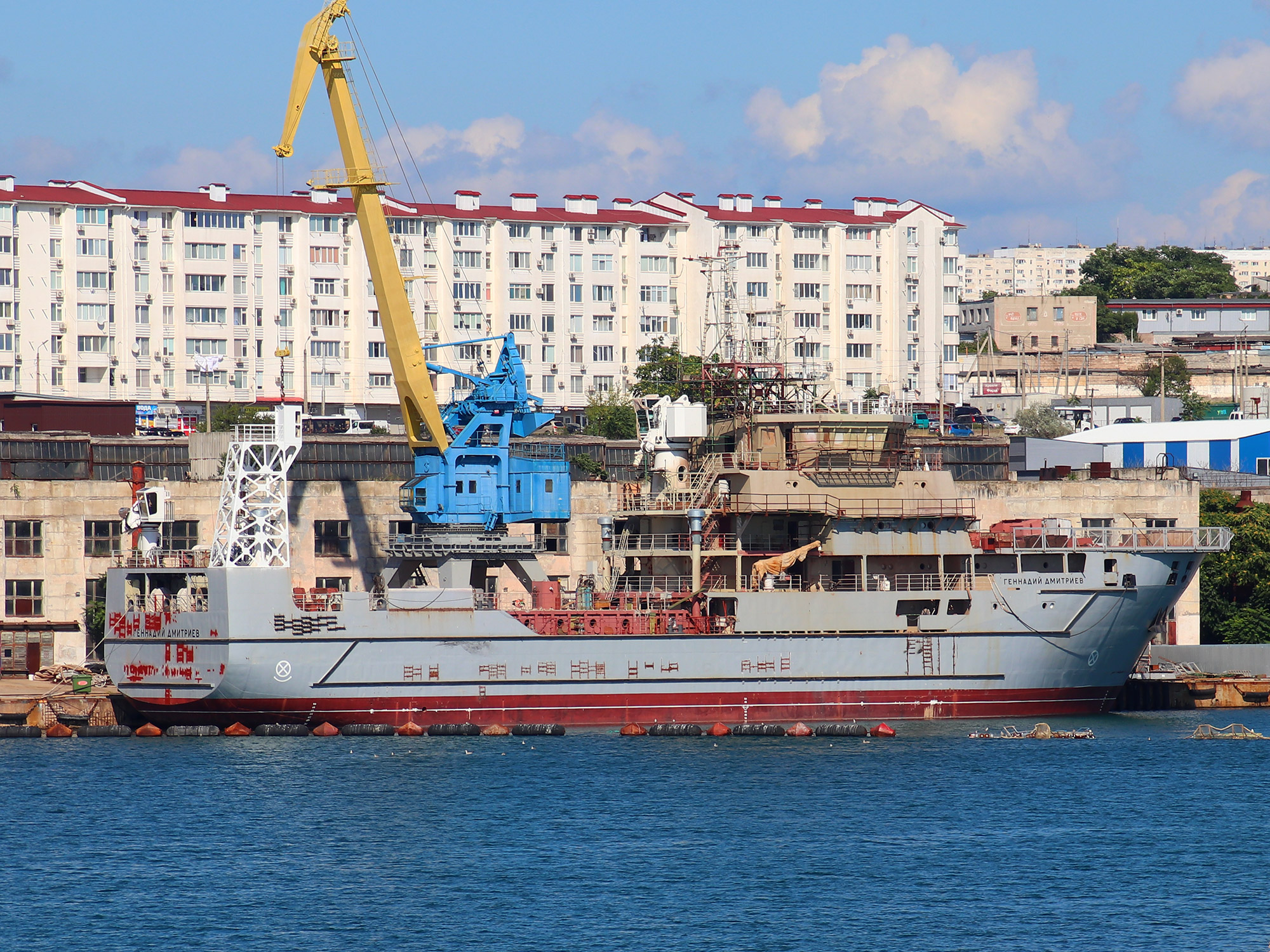 Морской транспорт вооружения "Геннадий Дмитриев" на достройке в Севастополе (фото А.Бричевский, 12 июля 2023 г.)