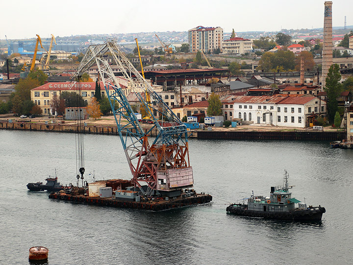 Буксировка плавучего крана "ПК-3100" в б.Южная, Севастополь (фото А.Бричевский, 10 ноября 2020 г.)