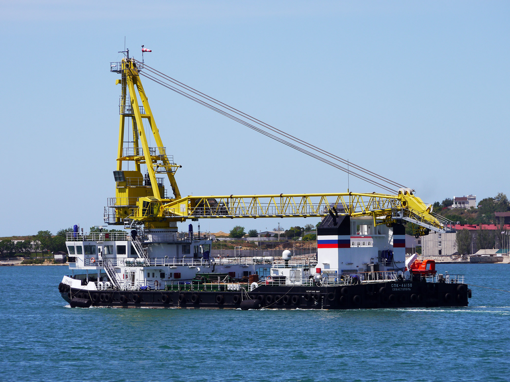 Самоходный плавучий кран "СПК-46150" на ходу (фото А.Бричевский, 05 июня 2017 г.)