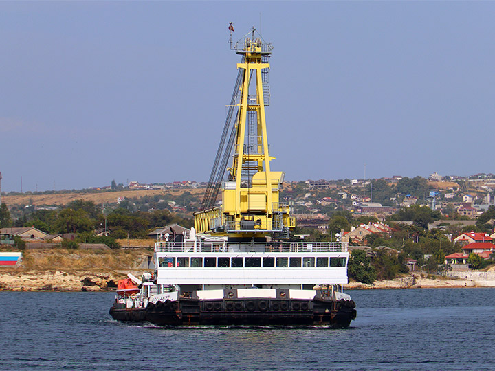 Самоходный плавучий кран СПК-46150 ЧФ РФ на ходу в Севастопольской бухте (фото А.Бричевский, 21 августа 2024 г.)